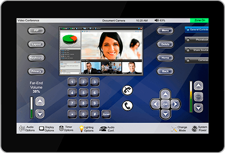 Ahora tus presentaciones y conferencias serán más sencillas de operar gracias a los sistemas de automatización y domótica que tenemos para ti, controla los equipos de audio, video, persianas, iluminación y microfonía, desde una Tablet o pantalla táctil de control.