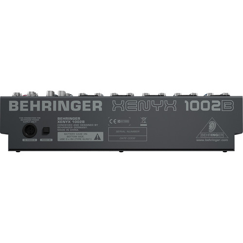 Operación de campo. Los reporteros de radio y televisión utilizan la Xenyx 1002B por su facilidad de uso, fidelidad notable y robusta fiabilidad. Y su opción de funcionamiento a batería de 9V permiten a los locutores y corresponsales utilizar el 1002B en lugares remotos en donde la energía es difícil de conseguir (Se requieren 2 pilas alcalinas de 9V para funcionamiento normal y 3 para alimentación phantom).
