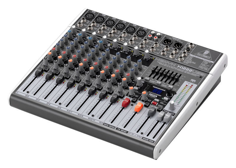 El mezclador compacto XENYX X1222USB le permite lograr sin esfuerzo un sonido de calidad superior. Los canales 1 - 4 cuentan con nuestros preamplificadores de micrófono XENYX, reconocidos por su rendimiento prístino, además de que 2 de los 4 canales estéreo aceptan entradas XLR, así como fuentes de nivel de línea. Todos los canales mono obtienen nuestros ecualizadores ultra-musicales "británicos" de 3 bandas y compresores "de una perilla" fáciles de usar para lo último en punch y claridad. Agregue a esto nuestro procesador Multi-FX de doble motor de 24 bits con 16 presets editables de nivel profesional que incluyen reverberación, coro, flanger, delay, pitch shifter y multi-efectos, y el X1222USB se convierte en un mezclador increíblemente versátil para sus actuaciones en vivo.