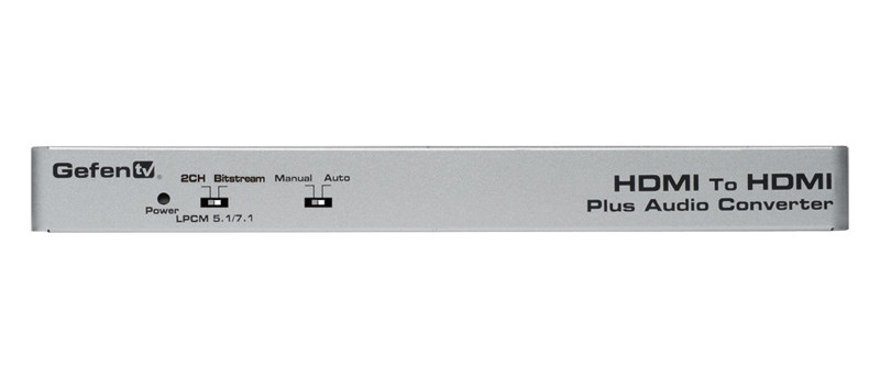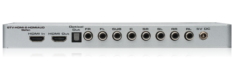 The GefenTV HDMI to HDMI Audio Converter is a product that takes a Hi-Def source using HDMI and outputs it to an HDTV display using HDMI and, in addition, up to 8 channels of LPCM audio output through eight RCA connectors. Bitstream is output via an Optical digital connector.