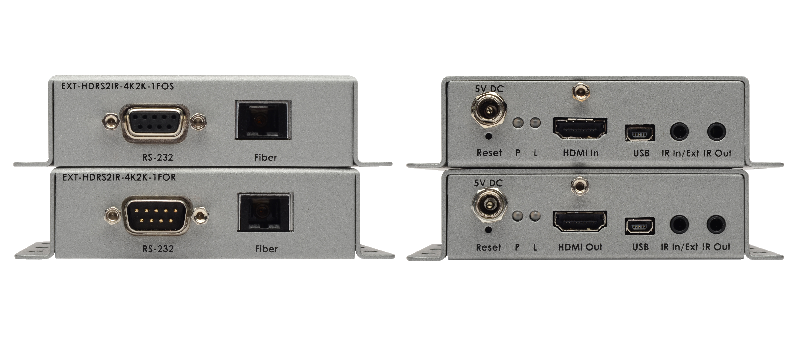- Extiende HDMI, RS-232 y Bidireccional IR a través de de un cable de fibra óptica