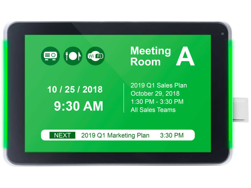 El letrero inteligente todo en uno XDS-107X elegantemente diseñado para el espacio interior moderno. Incluye capacidades táctiles completas, Power-over-Ethernet y resolución de 1280 × 800 para gráficos asombrosos en pantalla. El XDS-107X incluye un soporte de montaje empotrado en la cubierta posterior integrado, que también proporciona una pantalla de mostrador de aspecto limpio con un soporte integrado. El XDS-107X también es muy delgado: mide solo 1 ”/ 28 mm. Incluye una luz lateral LED programable para la comunicación visible inmediata del estado de la habitación, que se muestra en verde cuando la habitación está disponible y en rojo cuando no, lo que permite a los espectadores ver la disponibilidad de la habitación desde la distancia.