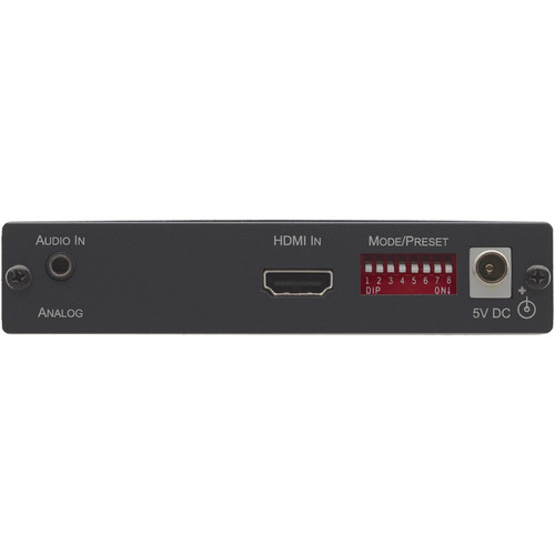 Un conjunto de interruptores DIP controlan y modifican las funciones EDID, HDCP, incrustado / desembebido y modo de suspensión. También hay una entrada de audio estéreo analógico de 3,5 mm que puede incrustar audio en la salida HDMI. Se incluye un adaptador de corriente de 5 VCC.