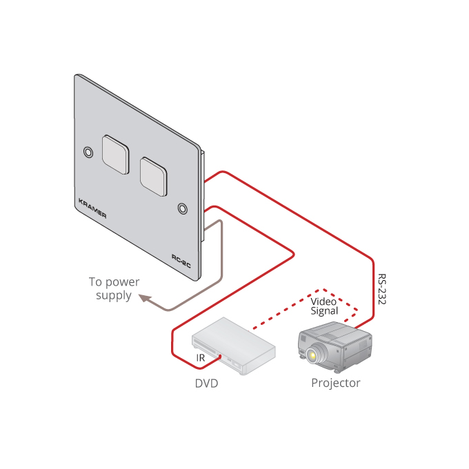 El RC−2C es ideal para control sencillo, apropiado de espacios pequeños con dispositivos controlados IR y serie tales como proyectores y dispositivos de imagen.