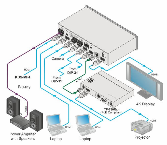 INICIO / Kramer Kramer VS-611DT Autoswitcher 4K 6: 1 con salidas HDMI y HDBT