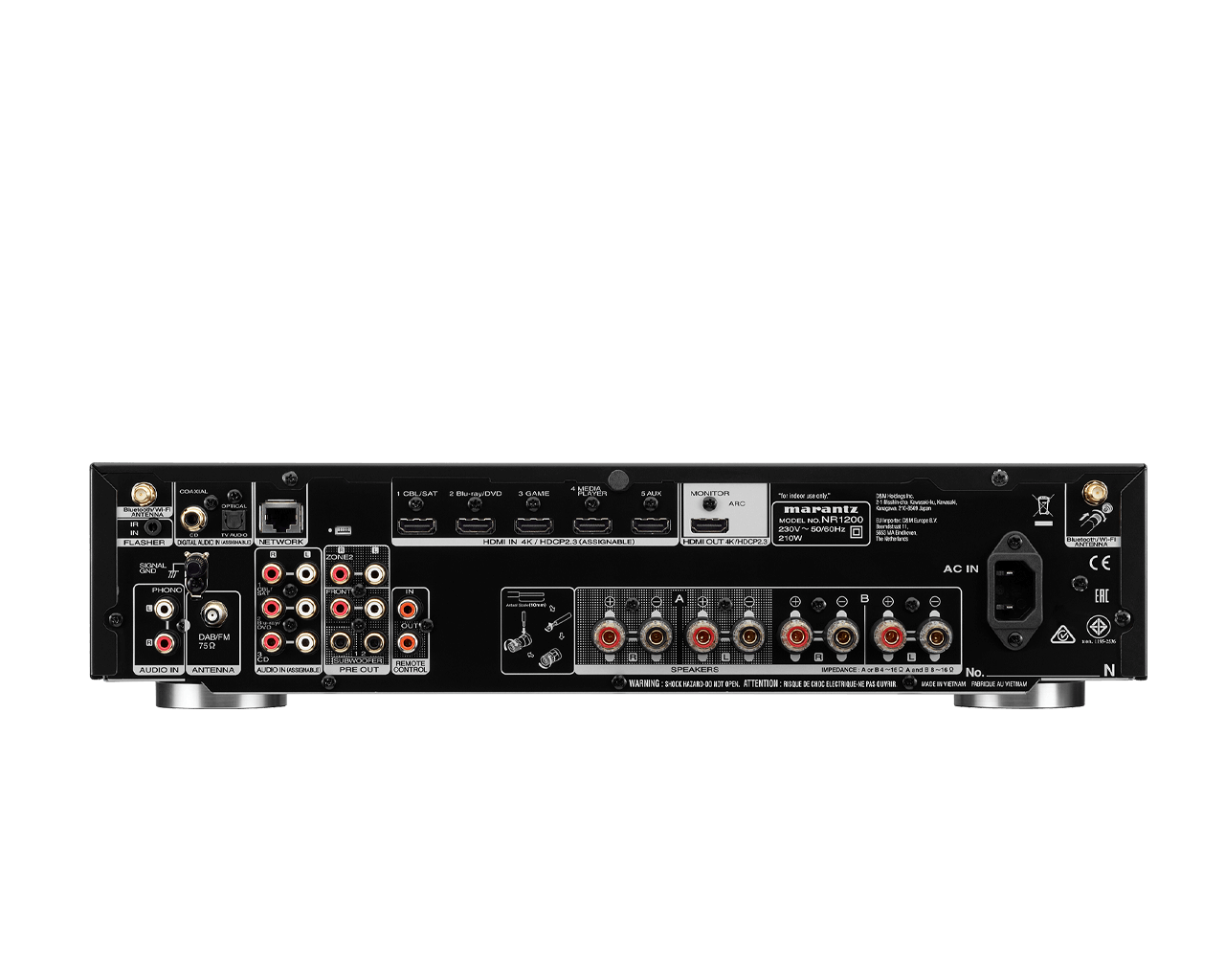 - Conectividad Smart TV:Controle el NR1200 con el mando a distancia de su televisor. Soporte HDMI-CEC para un enrutado sin fisuras de lo último en codificación de audio y video desde su TV a su receptor estereofónico.