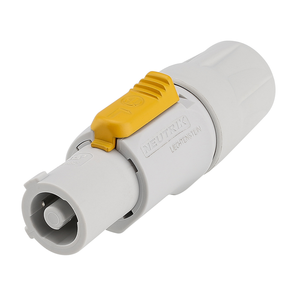 El powerCON es un conector de CA de 3 conductores de bloqueo con contactos para contacto de línea, neutro y pre-acoplamiento. Sustituye a los acopladores de electrodomésticos siempre que sea necesaria una solución muy robusta en combinación con un dispositivo de bloqueo para garantizar una conexión de alimentación segura