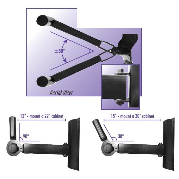 clubes, estudios de grabación, salas de multimedia en el hogar, escuelas o casi cualquier lugar! Para el montaje en superficies planas, este soporte ajustable presenta un ajuste de ángulo de inclinación, así como una bisagra giratoria de 30 °.