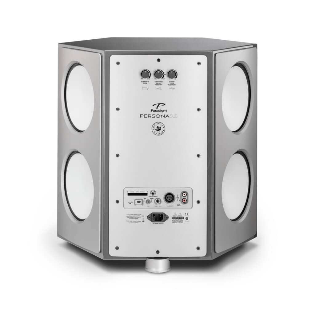 Seis woofers de 8 pulgadas, con envolventes duraderos sobremoldeados, están alineados radialmente en el exclusivo gabinete hexagonal de la arquitectura de diseño de cancelación de vibración de Paradigm. Alimentado por un amplificador Ultra-Class-D de 1700W (capaz de picos dinámicos de 3400W) y una variedad de mejoras de bajos Paradigm como DSP avanzado, ventilación eficiente y conmutación superior de fuente de alimentación, este sub agrega profundidad, claridad y precisión de bajos a su audio de Persona sistema. Consiga un bajo musical bien mezclado hasta 12Hz asombrosos. ¡Usa dos o más para una experiencia de audio verdaderamente conmovedora!