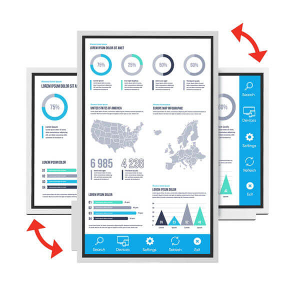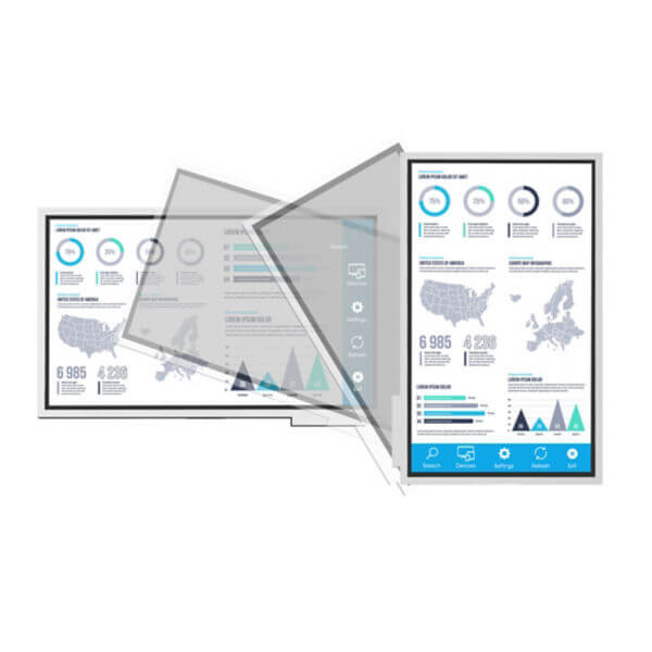 La interfaz rotacional gira suavemente la pantalla de horizontal a vertical, al tiempo que proporciona la estabilidad necesaria para una pantalla táctil
