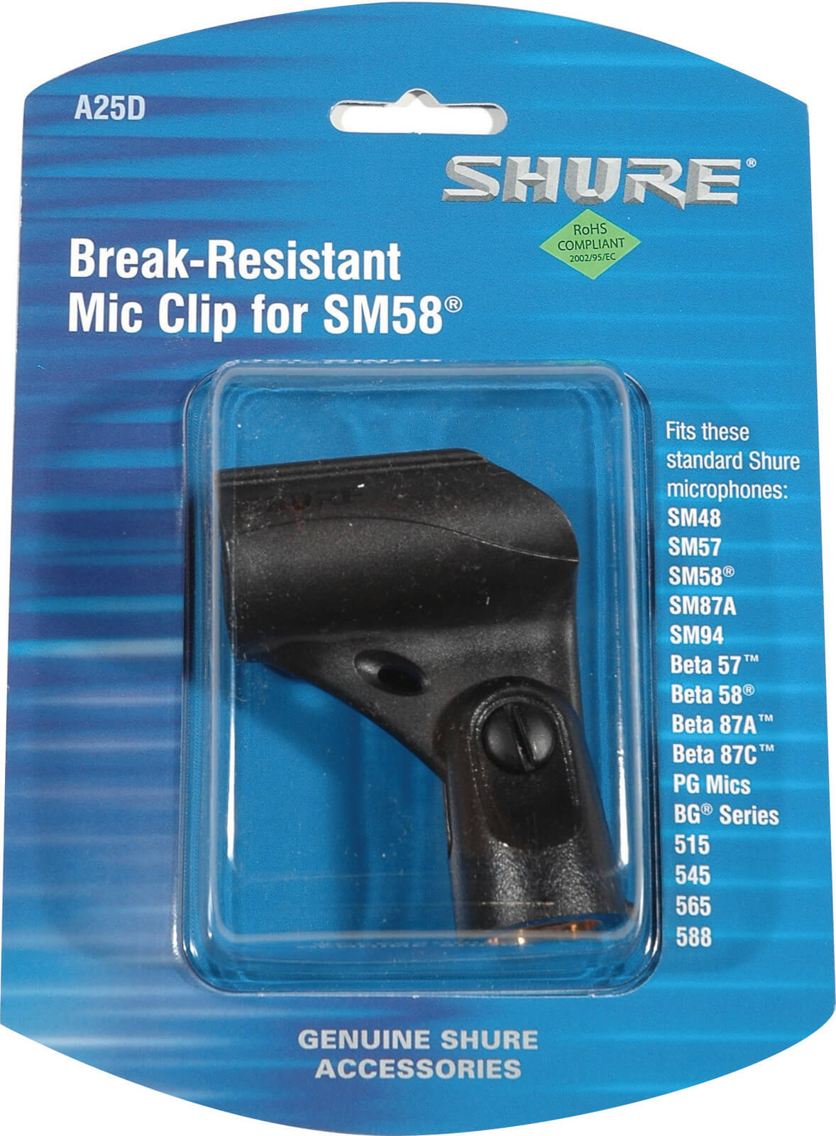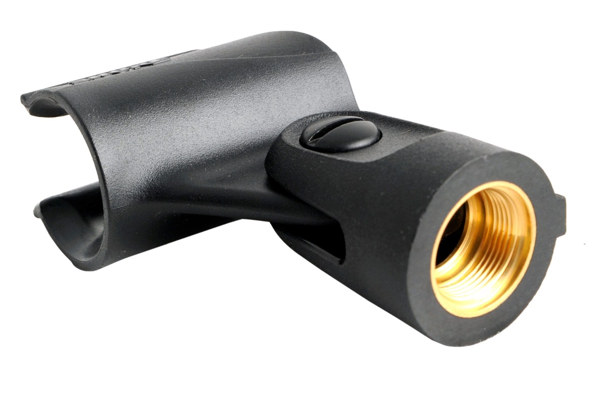 Ajusta con seguridad los micrófonos SM58, SM57, SM87A, Beta 87A, Beta 87C y todos los micrófonos con un mínimo de 3/4" de anchura a un pedestal de micrófono.