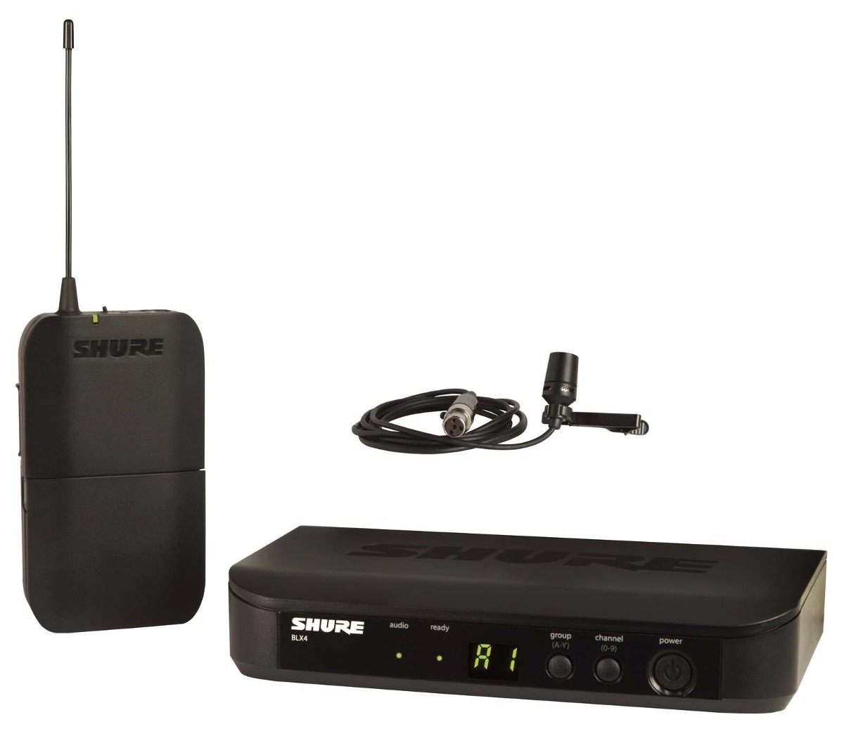 Incluye receptor inalámbrico BLX4, transmisor de cuerpo BLX1, micrófono de solapa CVL, fuente de alimentación, clip de solapa, paravientos, y guía de usuario.