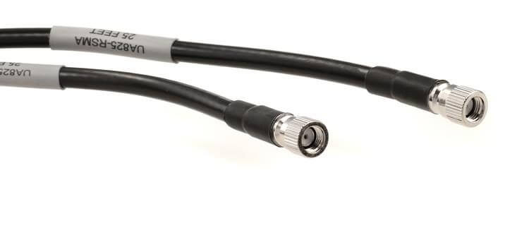 El UA825-RSMA es un cable coaxial SMA inverso de 7,6 m para uso con aplicaciones de montaje remoto inalámbrico digital avanzado GLX-D.