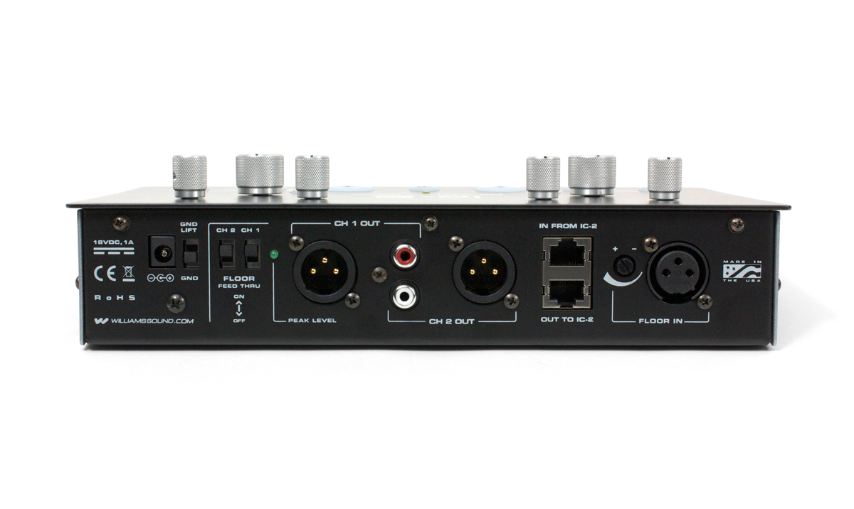 Ideal para las conferencias estilo presentación de hasta 14 idiomas, donde se utiliza un idioma original y un solo idioma de retransmisión. Puede utilizarse con los transmisores FM, infrarrojos y Digi-Wave™ de Williams Sound para instalaciones portátiles o fijas. Diseñado para cumplir con las normas internacionales para las consolas portátiles de interpretación.