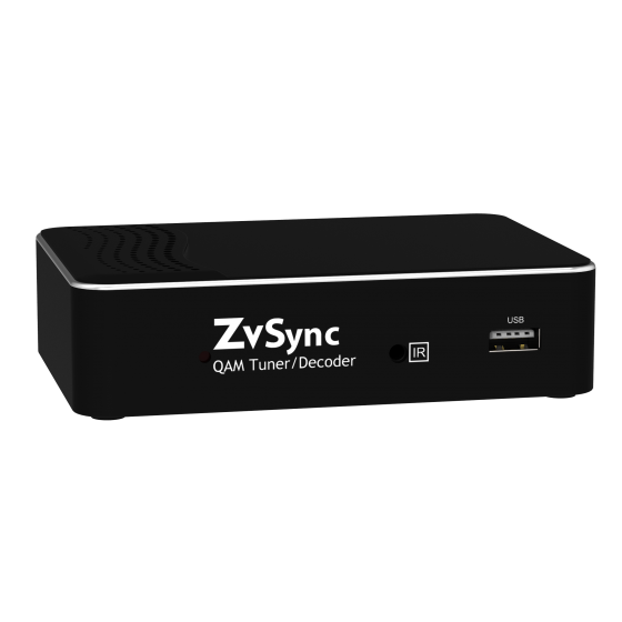 Have a projector, monitor or other display without a digital tuner? ZvSync is a digital cable tuner with HDMI and composite outputs. It can be used for any display that is not equipped with a built-in digital tuner, such as: projectors, HDTVs without tuners, commercial displays, monitors, and analog TVs. The ZvSync enables you to connect to any ZvPro or Hdbridge encoder / modulator and receive over 100 channels on your display. Perfect for sports bars, assisted living and education environments where you have both televisions and projectors. The ZvSync takes the signal via coax from the ZvPro and converts it to either an HDMI or composite video output that can be used on nearly any display.